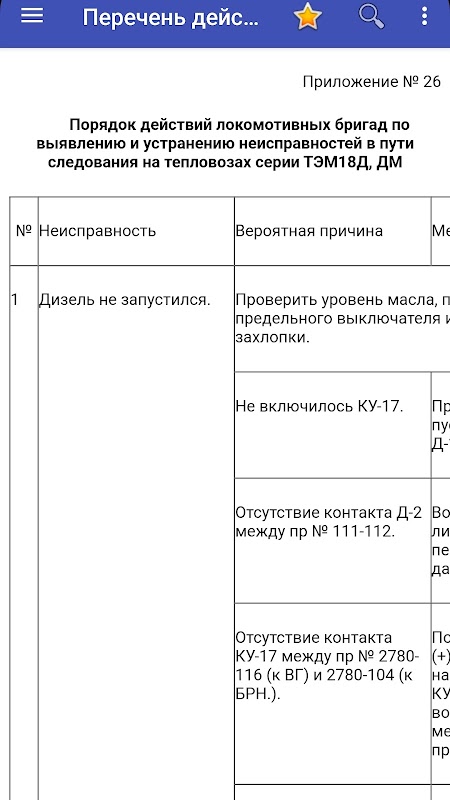 Arızaları tespit etmek ve ortadan kaldırmak için lokomotif ekiplerinin eylemlerinin listesi
