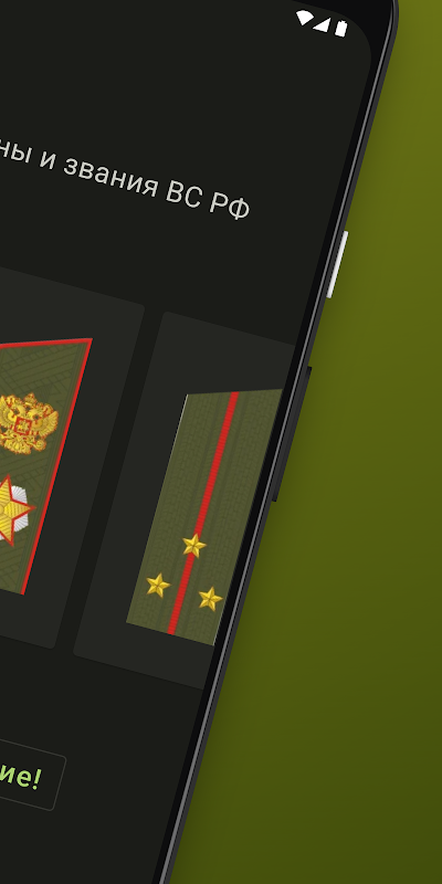 Rusya Federasyonu Silahlı Kuvvetlerinin askeri rütbelerini hızlı ve kolay bir şekilde öğrenmenize yardımcı olacak bir uygulama.