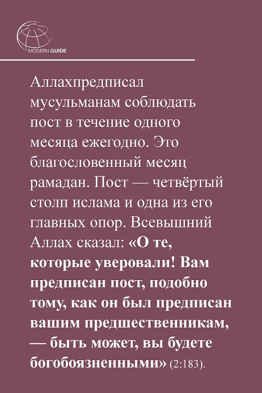 Bir Müslüman için reçete edildiği için standartları ve hedefleri bir açıklama ile bir yazı - Burada İslam'ın dördüncü ayağı ile görüşecek. Ayrıca onun için dayandığı, haysiyet ve oruç ödül açıklar. Şeriat normlar oruç yetersizlik ile ilişkili, Allah postayla teslim kimselerin listeler vardır. O da Ramazan Bayramı (Ramazan Bayramı) ve ona karşı Müslümanların tutumu nitelendirdi.