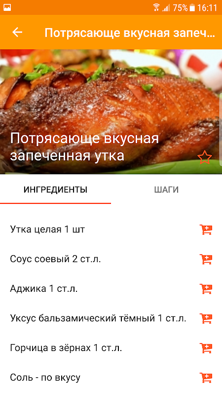 Здесь у вас есть возможность составить список покупок из ингредиентов рецепта.