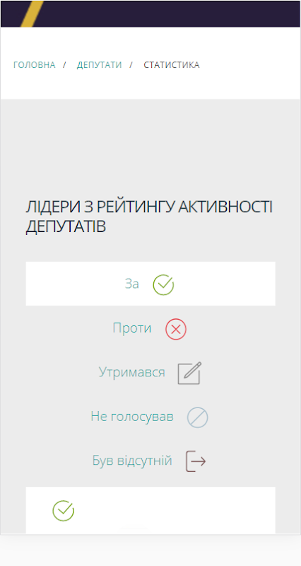побачити рейтинг депутатів за активністю, а також тих, хто не відвідував засідання.