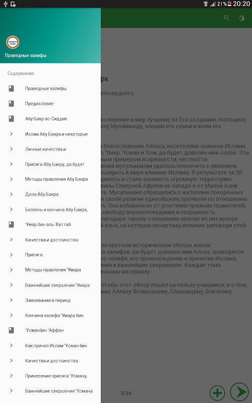 В предлагаемом вниманию читателя кратком историческом обзоре жизни и деятельности четырёх праведных халифов, да будет доволен ими Аллах, приводятся сведения о происхождении каждого халифа, его происхождении и принятии Ислама, о его достоинствах, образе правления и важнейших свершениях. Каждая тема завершается вопросами по пройденному материалу.