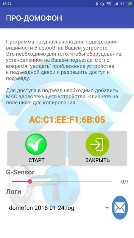 Для входа в подъезд используется доступ по Bluetooth. Сервис поддерживает Bluetooth модуль видимым для системы.