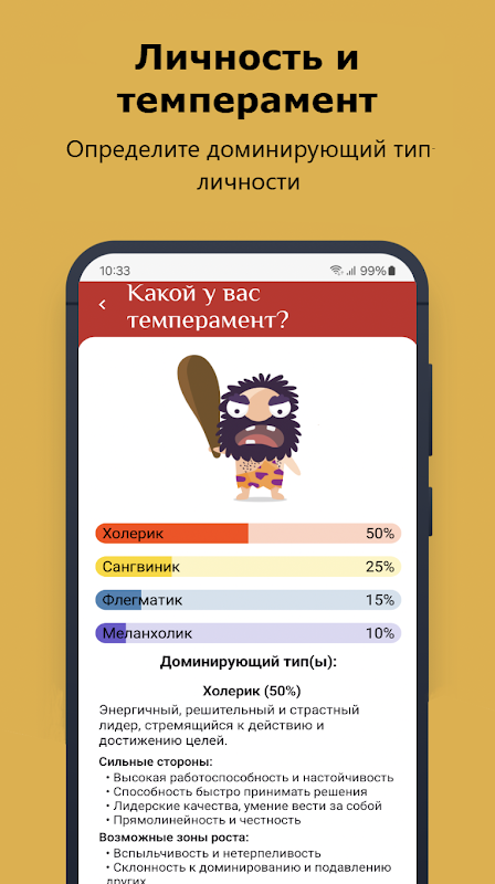 Uygulamayı indirin ve karakter ve kişilik üzerine büyüleyici psikolojik testler yapın. Her sonuç size yeni bir şey gösterecek ve kendinize farklı bir açıdan bakmanıza yardımcı olacaktır.
