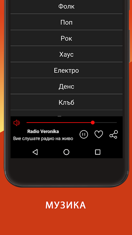 Bir şehir veya tür seçerek telefonunuzdaki popüler Bulgar Radyo İstasyonları listesini Çevrimiçi arayabilirsiniz. Radyo istasyonlarının listesi, uygulamadaki popülerliklerine göre sıralanmıştır. En sevdiğiniz radyo istasyonunu seçip "çalıştır" düğmesine basar basmaz, uygulama arka planda çalışmaya devam ederken, siz telefonunuzu kullanmakta özgür olacaksınız.