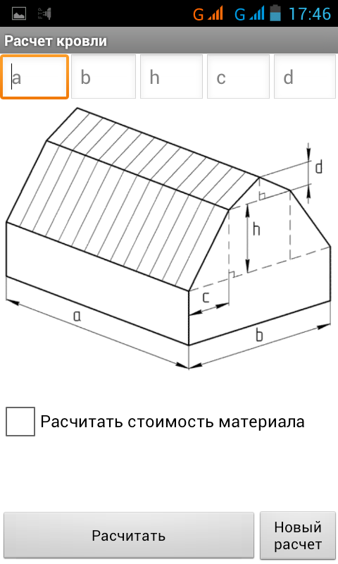 Программа позволяет произвести расчет площади возводимой кровли по выбранному виду и указанным размерам.