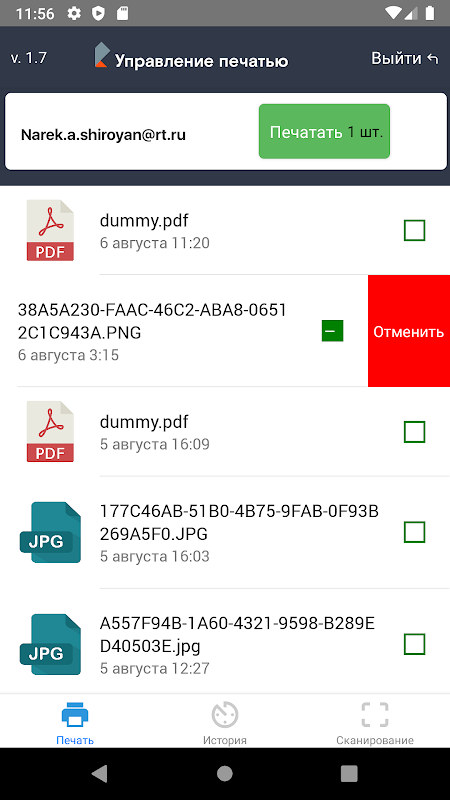 Bir mobil uygulama ve baskı ekipmanının QR kodlarını kullanarak PJSC Rostelecom'dan baskı hizmetinin herhangi bir yazıcısında belge yazdırma.