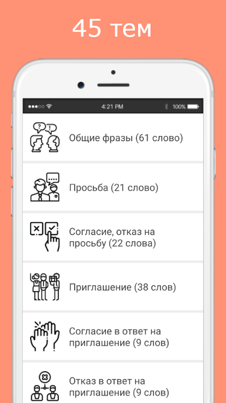 Uygulama, dili öğrenmek için ilk adımı atmanıza, ilginizi çekmenize olanak tanıyacak ve ardından kendinizi yalnızca Rusça konuşma cümleleri ile sınırlamak veya daha ileri gitmek, dilbilgisi, kelime bilgisi ve sözdizimi çalışmak için karar vermek size kalmıştır.