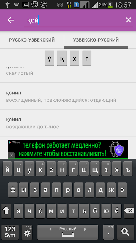• Русско-узбекский словарь Ekran Görüntüsü 2