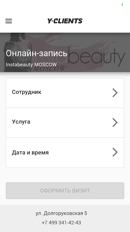 Online güzellik salonunda giriş için Başvuru InstaBeauty