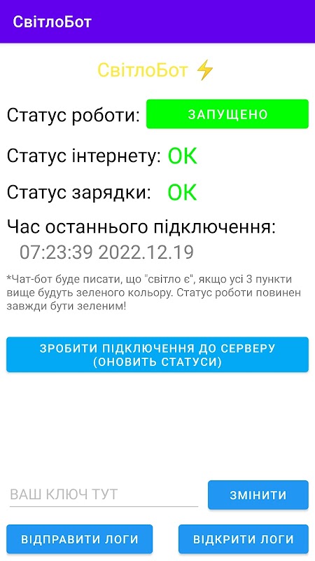 СвітлоБот ⚡️ - це унікальний безкоштовний волотерський проект, завдяки якому ви можете легко сиежити за світлом у вашому будинку або офісі. Çoğu zaman, en iyi ihtimalle, en iyi ihtimalle, en iyi ihtimalle, en iyi ihtimalle. Цей бот буде автоматично публікувати повідомлення про поточний стан світла у ваш власний телеграм канал.
