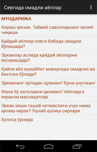 Чунки, ўзбекона турмушимизда, аниқроғи оилада юзага келаётган муаммоларнинг аксарияти ушбу иловада келтирилган маълумотлар орқали бартараф этилиши турган гап. Сиз бир ҳафсала қилиб уни охиригача мутолаа қилиб чиқинг. Кўп нарсани шунда билиб оласиз.