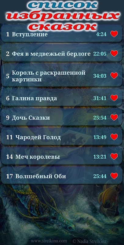 - наличие удобного списка ❤ "любимые аудиосказки".