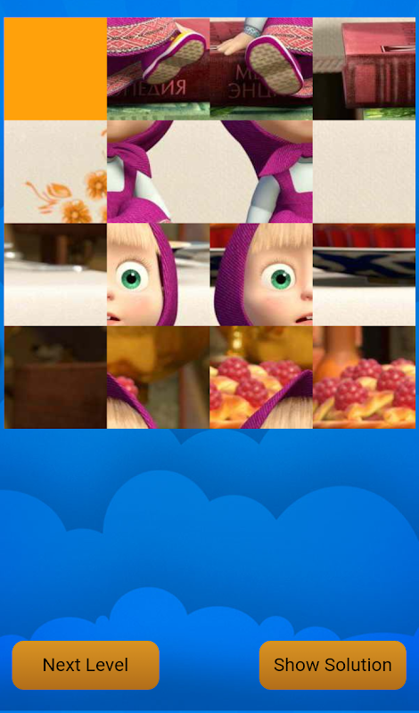 Необходимо собрать картинку с изображением героев из мультфильма Маша и Медведь