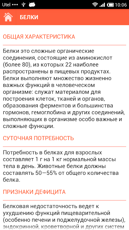 • Можно сортировать продукты по содержанию в них выбранного нутриента;