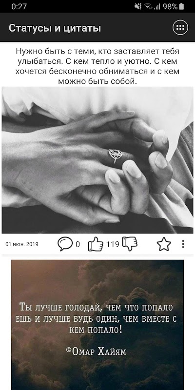 Gerçek hayat ve harika durumlar, kadınlar ve kısa sözler hakkında alıntılar, Müslüman durumları ve felsefi sözler, Omar Khayyam'dan alıntılar ve komik şakalar, güzel kelimelerle atmosferik fotoğraf koleksiyonları, hayattan komik sözler ve aforizmalar, kitaplardan özgün zeki sözler, resimlerle güzel sözler ve kısa zeki ifadeler, kelimeler okur ve harika insanlardan alıntılar yapar. 🦉