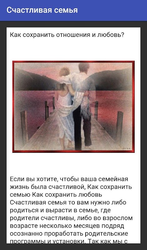 Приложение дает советы о том, как сделать брак счастливым на долгие годы, о том как переносить ссоры и идти на пути к общей цели.