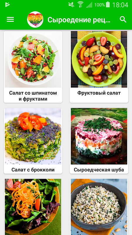 Bu uygulamada olan liste, çiğ yemek tarifleri: