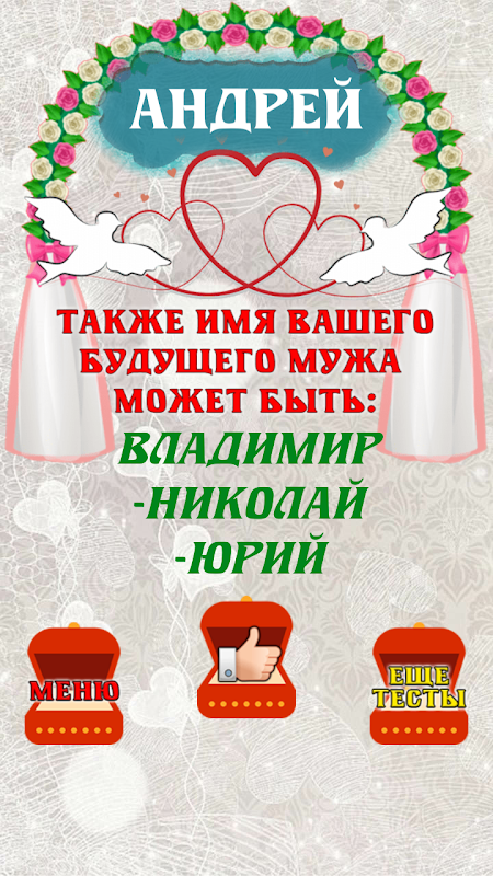 Делись результатами с подругами, пусть они тоже узнают имя их будущего любимого человека!