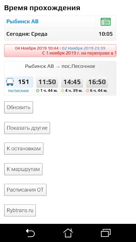 Hem en yakın üç uçuşu, hem Rybinsk şehrinin kentsel toplu taşıma araçlarını hem de banliyöleri gösterir (uçuş programlarına göre).