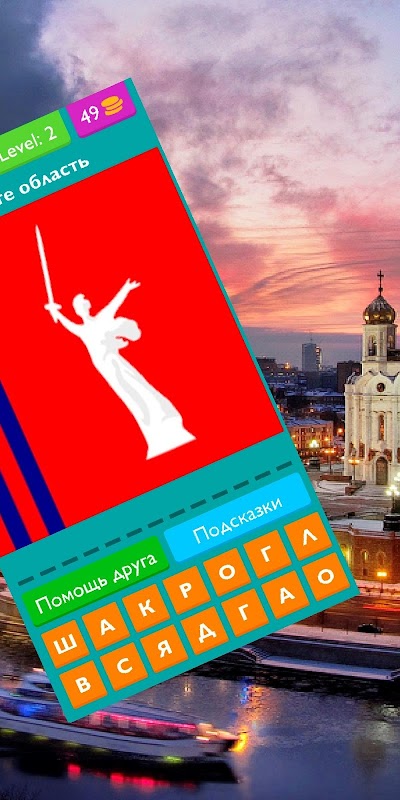 Правила максимально просты: По картинке нужно отгадать флаг области РФ. Посмотрите на картинки – проведите аналогию и угадайте карту. Если вы застряли на каком-то уровне – не беда, используйте подсказки "Удалить ненужные буквы", "Вставить правильную букву" или "Пропустить уровень".