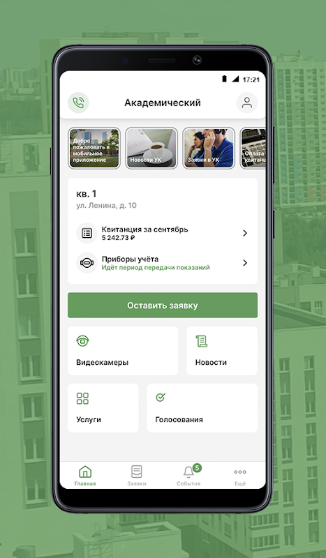 Yönetim şirketi "Akademik" sakinleri için mobil uygulama