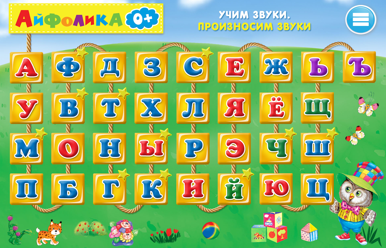 Uygulama seslerin çalışma için tasarlanmıştır. spiker sesi diyor ve dişli üzerine tıklayın ve ses tekrarlamak çocuğu sunuyor. Bir ses birkaç kez söylediği, çocuk harflerin ses ve görsel görüntüyü ilişkilendirir. uygulamanın amacı - sesin doğru telaffuz düzeltmek ve mektup yazma çalışma için bir sonraki adım için çocuğu hazırlamak. Ek "sesler" Tabii öğrenmenin bir parçası okul öncesi çocukları için "Ayfolika" okumaktır.