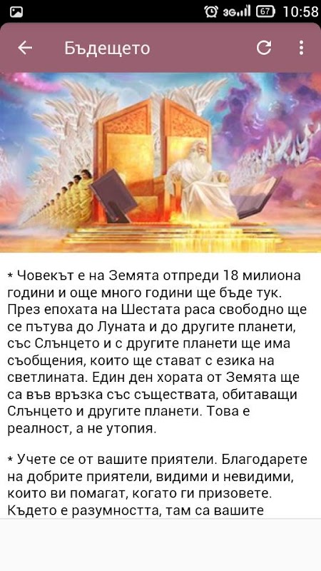 В приложението са подбрани негови мисли от беседите през годините. Това е едно зрънце от казаното от него, за: - аз и другите, за астрологията, за Бог, за аурата, за бъдещето, за вярата, за доброто и злото, за храненето.