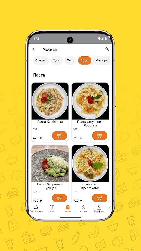 Uygulamayı indirin, kaydolun ve sadece birkaç tıklamayla yemeğiniz size ulaşsın. Uygun bir teslimat saati ve tercih ettiğiniz ödeme yöntemini seçebilirsiniz. Yemek pişirmeyi unutun - sadece rahatlayın ve en lezzetli yemeği bekleyin.