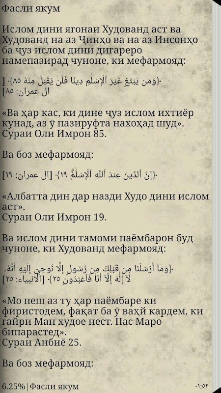 Фасли якум: Дини Ислом дини тамоми Паёмбарон аст.