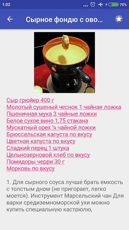 - Ориентировочное время приготовления блюда с картинками;