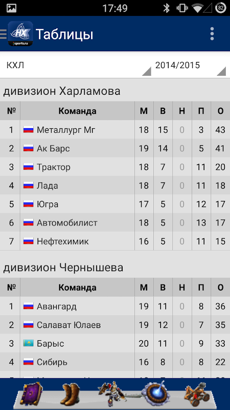 • Maçların, takvimin ve KHL tablosunun metin yayınları;