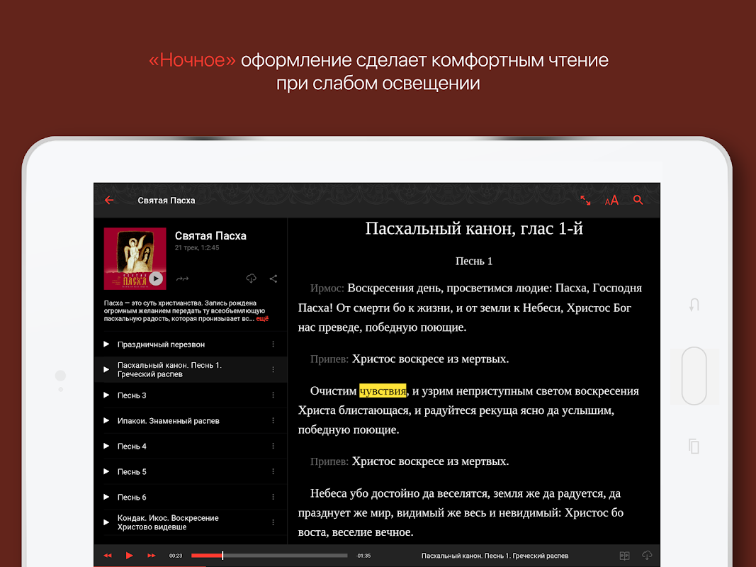 Şu anda senkron sözleri "Kutsal Paskalya" ve kitaplar da vardır "Lent İlahileri." Ses geri kalanına sözleri yakında eklenecektir.