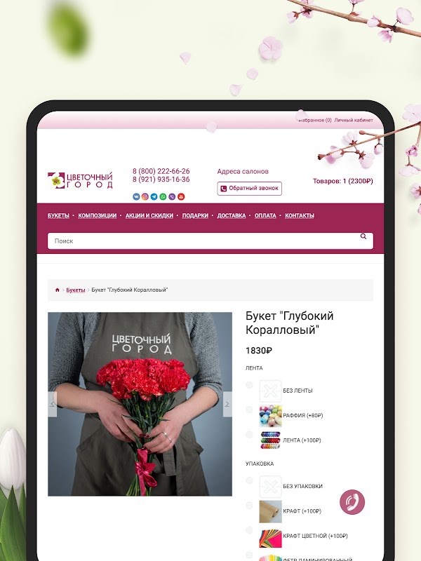 Мобильное приложение по продаже цветов и букетов с доставкой