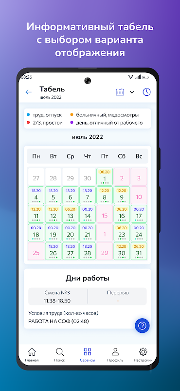Uygulama, Soligorsk'taki en büyük işletmenin çalışanının çalışma sayfası, maaş bordrosu, eğitim verileri, teşvikler hakkında bilgi sahibi olmasına, kişisel malzeme ve ekipman kartı hakkında bilgi edinmesine, iş kıyafeti listesi hakkında bilgi edinmesine olanak tanır.