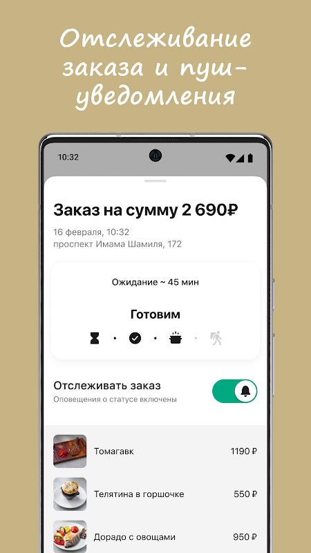 Shater restoranından teslimat için uygun uygulama. Benzersiz tarifler ve yüksek hizmetle yüksek kaliteli yemek teslimatı