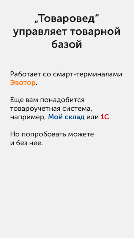 Чтобы приложение «Товаровед» работало в полную силу, нужны: