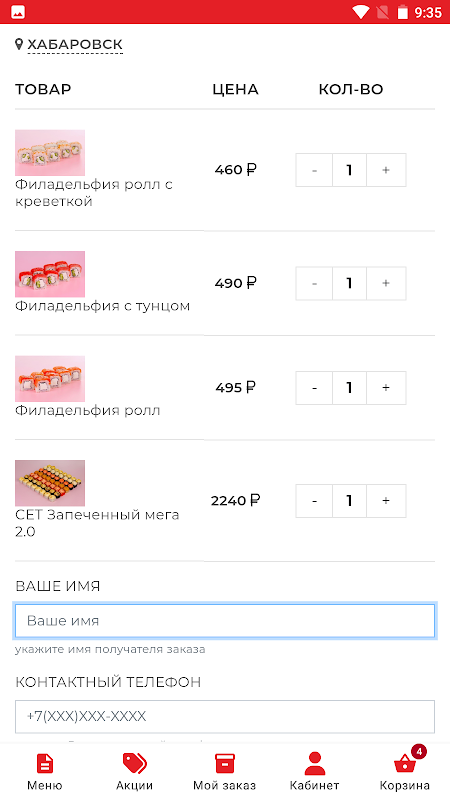 Komsomolsk-on-Amur'da Yapona Roll. Teslimatı veya teslim almayı hemen düzenleyin