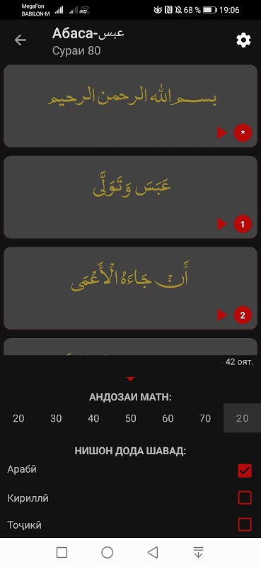 Az suresi 31-um, sonra suresi 114-um. Arabi, Kirilli, Tokiki.