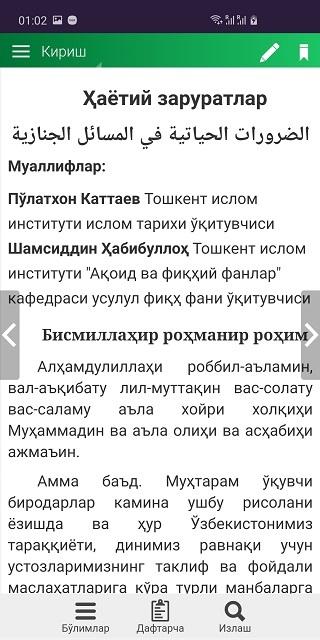 Муҳтарам ўқувчиларга бу мўжаз рисолани етказишдан мақсад аҳли мўминларга энг зарур бўлган масалаларни баён қилиб беришликдир. Булар ўлим тўшагила ётган кишига қилинадиган амаллар, вафотидан кейин қилинадиган амаллар, маййитни таҳорати ҳақида, маййитни ғусл қилдириш, кафанлаш, қабр ковлаш тартиби ва мурдани лаҳадга қўйиш масалаларидир. Чунки бу масалалар ҳар бир мўмин мусулмон фарзанди учун ҳаётий зарур масалалардир. Шунингдек, муқаддас динимиздаги энг кўп бидъати / хурофотлар аралашиб кетган амал / бу жаноза масалаларидир. Daha fazla bilgi Harita Yükleniyor. Ушбу рисола ўқувчи биродарларимизга манфаати етгудек бўлса, ниҳоятда мамнун бўлар эдик.