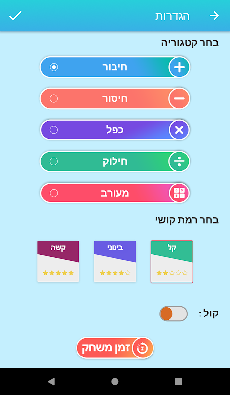 משחק חשבון - תחשוב מהר 1.0