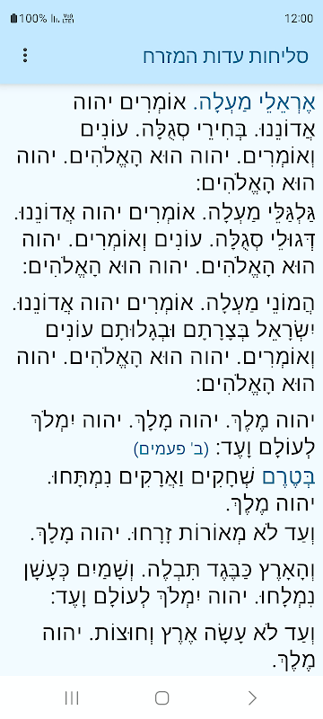 Slichot, Doğu ifadesinin metni. Puanı olan büyük muhabir.