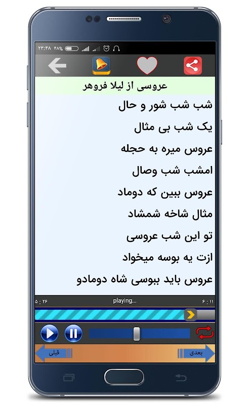 ✔امکان افزودن آهنگ ها به لیست علاقه مندی ها