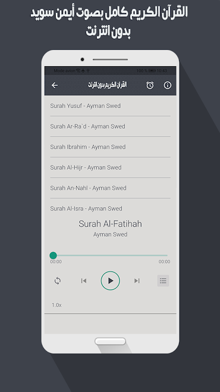 Ayman Suwaid sesiyle Kur'an'ın uygulaması. Tüm Kur'an duvarını içeren tek bir program aracılığıyla cep telefonunuzdan veya tabletinizden tüm Kur'an duvarını duyabilirsiniz ve Kur'an okunması, Android telefonlar için mağazada olduğu gibi Ayman Suwaid sesinin ücretsiz olması ile karakterizedir. Kur'an-ı Kerim'i Şeyh Ayman Suwaid'in sesiyle dilediğiniz yerde okumanın tadını çıkarmak için.