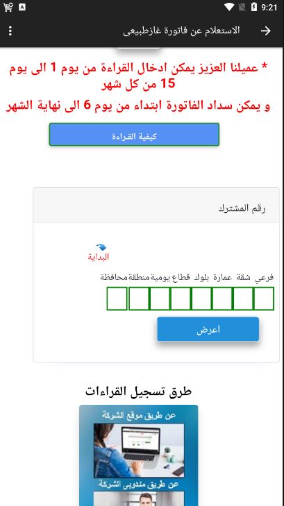 ادخال قراءة عداد الغاز الطبيعي 6.1