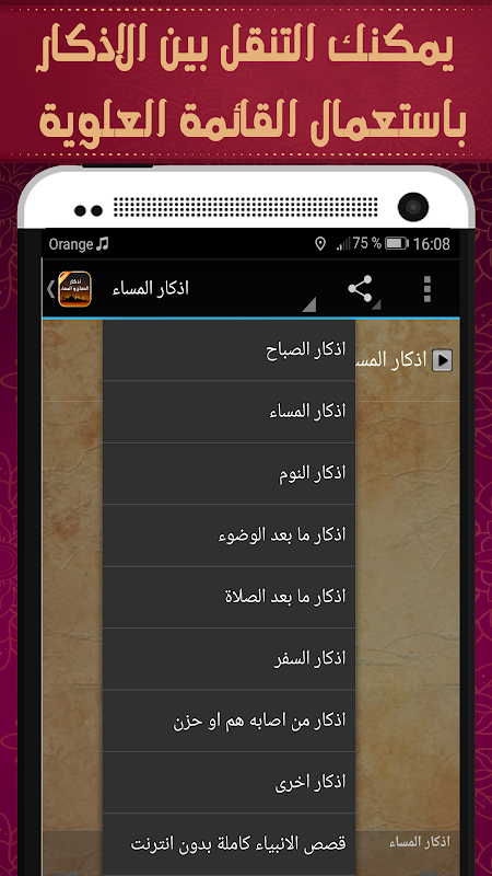 -يمكنك إستعمال الأذكار أو الأدعية الموجودة في التطبيق: