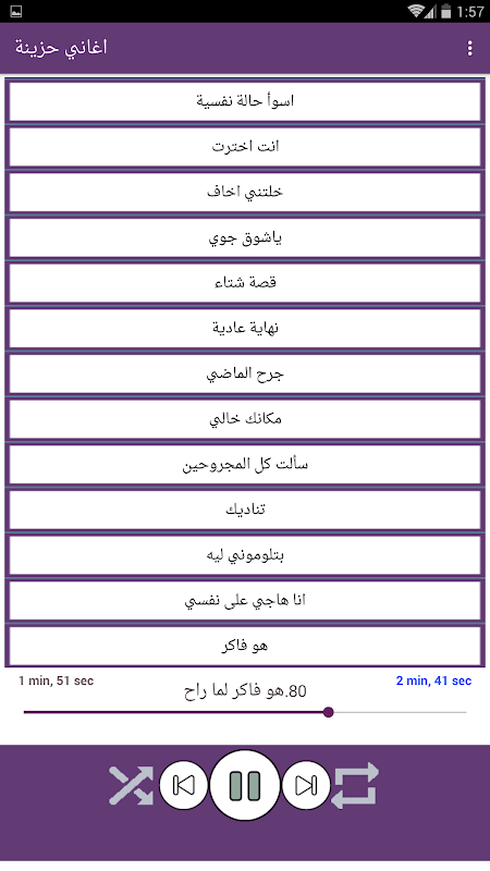 Uygulama net 2020-2021 olmadan en harika hüzünlü şarkıları içerir, uygulamada bulacağınız birçok şarkı 80 hüzünlü şarkı net olmadan en çok izlenen ve talep edilen çok sayıda hüzünlü Mısır ve Irak şarkıları