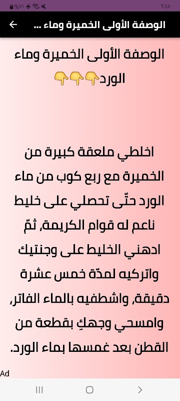Uygulama yüz veya yanaklar için doğal tarifler içeriyor