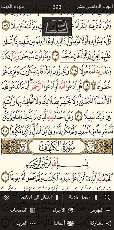 İnternet bağlantısı olmadan tüm Kur'an-ı Kerim'e erişebilir ve kağıt Kur'an ile tamamen aynıdır. Ayrıca arama özelliği, kolay yorumlama, Kur'an-ı Kerim kelimelerinin anlamları, Kur'an-ı Kerim'den dualar, tamamlama duası, yer imi koyma özelliği, surelerin dizini, bölümlerin ve kısımların dizini ve herhangi bir sayfaya geçme özelliği mevcuttur. Program, uzun süre okumaya devam etmek isteyenler için ekranı aydınlık tutar ve ekran parlaklık derecesini kontrol etme özelliği ile gece modunda okuma olanağı sunar. Program belirli bir sayfada kapatılıp tekrar açıldığında, kapatıldığı sayfaya otomatik olarak geri döner. Ayrıca, hem yatay hem de dikey modda okuma özelliği, net yazı tipi ve sayfaların göze hoş gelen arka plan rengiyle okuma olanağı da mevcuttur.