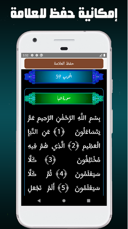 التطبيق يمكنك من حفظ الصفحة التي توقفت عندها أثناء تلاوة القرأن الكريم.